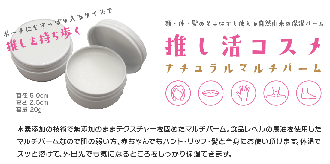 推し活応援 オリジナルデザインでの生産は小ロット40個から対応可能!オーダーメイドで香りを作ることもできます‼ キャラクターやタレントグッズの物販や通販にも!香りもデザインも自由自在なマルチバームを是非!お問い合わせやオーダーは公式LINEが便利です‼ お問い合わせ用公式LINE 専用の公式LINEにご登録頂きましたら、お問い合わせ、ご相談、オーダーまで公式LINEで完結しますので、ぜひご登録お願いいたします。 公式LINEご登録URL